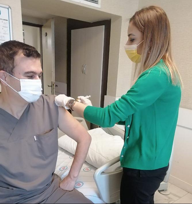 Tüm Türkiye’de aşı takviminin sorunsuz işlediğini belirten Özel Gaziantep Sevgi Hastanesi Başhekimi Çocuk Sağlığı ve Hastalıkları Uzmanı Dr. Murat Aydın; Aşı uygulamasında iki doz arası 28 gün sürüyor.İlk doz aşıyı olup 28 günü dolduran Özel Gaziantep Sevgi Hastanesi Çalışanlarına 2. doz uygulaması tüm kurallara uyularak yapılmaya başlandı” dedi. Dr.aydın, salgının son bulması için maske mesafe kuralına uymaya devam ederek aşının olumlu sonuçlarının tüm dünyada pandeminin sona ermesine katkı sağlayacaklarına inandığını söyledi.