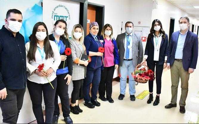 Türkiye'nin ilk özel hastanesi Özel MMT Amerikan Hastanesi, 8 Mart Dünya Kadınlar Gününde hastanede görev yapan personellerini ve hastalarını unutmadı.