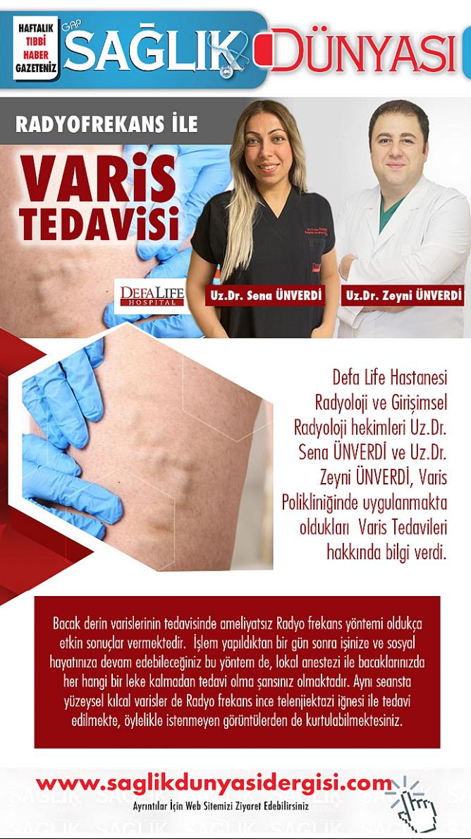 Defa Life Hastanesi Radyoloji ve Girişimsel Radyoloji hekimleri Uz.Dr. Sena ÜNVERDİ ve Uz.Dr. Zeyni ÜNVERDİ, Varis Polikliniğinde uygulanmakta oldukları Varis Tedavileri hakkında bilgi verdi.