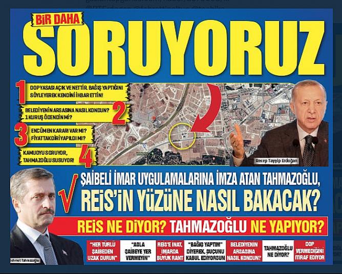 Şahinbey Belediyesi adına kayıtlı 7425 Ada 1 parseldeki 1311 metrekarelik arsanın 1271 metrekarelik kısmı 12.10.2017 tarihli 45278 yevmiye numaralı Tapu Resmi Senedi ile Şahinbey Belediye Başkanı Mehmet Tahmazoğlu’nun mülkiyetine geçiyor. Kamuoyu belediyeye ait bir arsanın nasıl bir yolla belediye başkanının mülkiyetine geçtiğini merak ederken Tahmazoğlu, gönderdiği metninde bu konuya hiç değinmiyor. Belediyeye ait bu arsayı alırken belediyeye ne kadar ödedin? Bunun için komisyon kuruldu mu? Fiyat takdiri yapıldı mı? Encümen kararı alındı mı? 1 Kuruş ödedin mi?