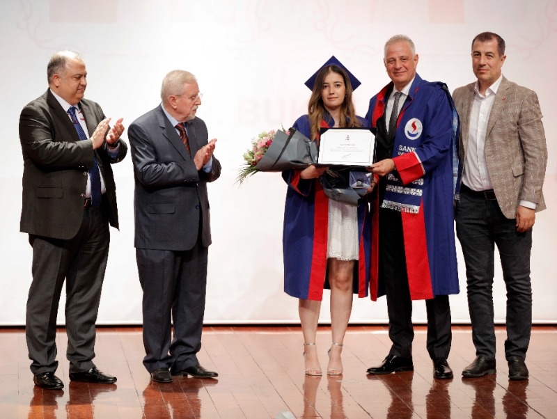Tıp Fakültesini birincilikle tamamlayan Dr. Emine Tutcan’a Mütevelli Heyet Başkanı Zeki Konukoğlu, SANKO Holding Yönetim Kurulu Başkanı Adil Sani Konukoğlu, Rektör Güner Dağlı, SANKO Üniversitesi Genel Sekreteri Dr. Yusuf Ziya Yıldırım, ikincilikle mezun olan Dr. İbrahim Eldemir’e Gaziantep Büyükşehir Belediye Başkan Vekili Mehmet Berk, SANKO Üniversitesi Mütevelli Heyet Başkan Vekili Ali Konukoğlu, Gaziantep İl Sağlık Müdürü Dr. Ümit Mutlu Tiryaki ve Rektör Yardımcısı Prof. Dr. M. Metin Bayram, dönem üçüncüsü Dr. Buket Ök’e ise Mütevelli Heyet Üyesi İbrahim Konukoğlu, SANKO Üniversitesi Hastanesi Genel Müdürü Dr. Sermet Kileci, Dr. Ersin Arslan Eğitim ve Araştırma Hastanesi Başhekimi Prof. Dr. Serdar Türkmen ve Tıp Fakültesi Dekanı Prof. Dr. Salih Murat Akkın diploma ve armağan takdim etti.