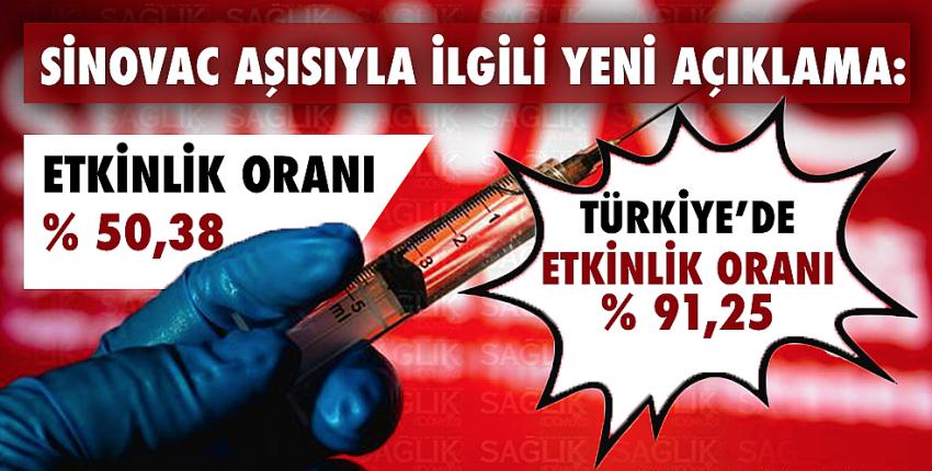 Türkiye’de ise Bilim Kurulu, yapılan testlerin geçici sonuçlarına göre aşının etkililik oranını yüzde 91,25 olarak bildirmişti. Bilim Kurulu Üyesi Prof. Dr. Serhat Ünal, 25 Aralık’ta yaptığı açıklamada toplam aşı etkinliğinin yüzde 91,25 olarak hesaplandığını, bu oranın gelecek günlerde daha da artmasını beklediklerini dile getirmişti.