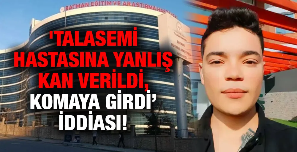 Batman Eğitim ve Araştırma Hastanesi Talasemi Ünitesi'nde 15-20 günde bir düzenli olarak kan almaya giden Furkan İçyar, iddiaya göre, dün 30 saniye boyunca yanlış kan verilmesi sonucu baygınlık geçirdi.