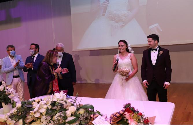 Elif ile Baturhan çiftinin nikahını Büyükşehir Belediye Başkanı Fatma Şahin kıyarken, nikah şahitliğini; Gaziantep Valisi Davut Gül, MHP Gaziantep Milletvekili Sermet Atay, İl Sağlık Müdürü Ümit Mutlu Tiryaki, Büyükşehir Belediye Başkanvekili Osman Toprak, Büyükşehir Belediyesi Genel Sekreteri Sezer Cihan, Oğuzeli Belediye Başkanı Sait Kılıç, Şahinbey Ağız ve Diş Sağlığı Hastanesi Başhekimi Gökhan Altıparmak, MHP İl Başkanı Cahit Çıkmaz, İzzet Şahin, AK Parti Şehitkamil İlçe Başkanı Mehmet Yılmaz, GASKİ Genel Müdürü Hüseyin Sönmezler, Metin Tolay, Mehmet Artan, Murat Uçan, Hikmet Dikbaş üstlendi. Vali Gül, genç çifte evlilik cüzdanını taktim ederek nasihatlerde bulundu.(Nevre Duman/gaziantepdogus.com)