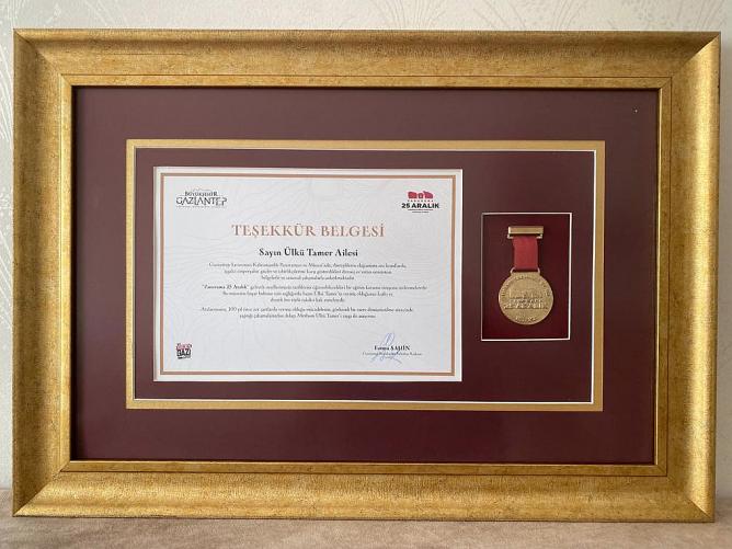 Gaziantep Büyükşehir Belediye Başkanlığı, 8 Şubat 2022’de, Antep’e Gazi Unvanı verilişinin 101’inci yılında, 25 Aralık Panorama Müzesi’nin gerçekleşmesinde diğer Antepliler ve Antepseverlere olduğu gibi sağlığında verdiği destekler için Gaziantepli gazeteci, yazar, şair, eleştirmen Ülkü Tamer’e de belge takdim etti.