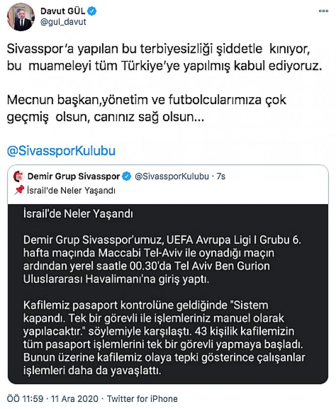 Demir Grup Sivasspor’a yapılan bu ayıba büyük tepki yağdı.İsrail’e Gaziantep Valisi ve daha önce Sivas’ta da valilik görevini yürüten Davut Gül de sert tepki gösterdi.