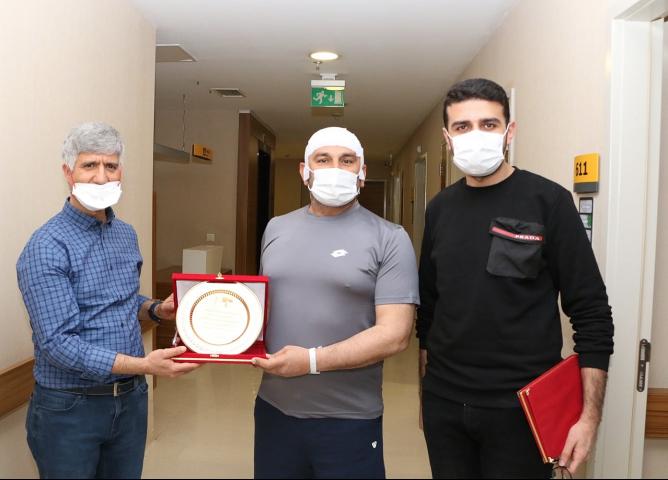 Mehmet Ali Akman, Medical Park Gaziantep Hastanesi ile ilgili memnuniyetini yönetim ve Beyin Omurilik ve Sinir Cerrahisi Hekimi için hazırlatmış olduğu plaketle ifade etti. Mehmet Ali Akman, plaketi Medical Park Gaziantep Hastanesi Genel Müdür Yardımcısı Ö. Emre Kubba ve Beyin Omurilik ve Sinir Cerrahisi Uzmanı (Nöroşirurji) Prof. Dr. Aslan Güzel’e takdim etti.