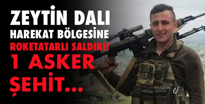 Milli Savunma Bakanlığından yapılan açıklamada, Zeytin Dalı harekat bölgesinde dün teröristlerce yapılan roketatarlı saldırıda bir askerin şehit olduğu, bir askerin de yaralandığı belirtildi.